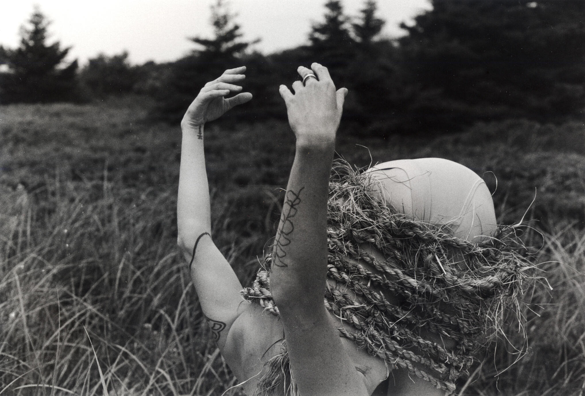 Foundational components of this piece stem from a previous project in 2019 through which Kit researched and developed a committed ritual of making simmens (handmade rope from straw, heather, and other natural materials) as an embodied practice of reconnection and collaboration with their Orcadian ancestors. The work explored questions around belonging, lineage, and ways we might better embody our efforts to disrupt white supremacy in the context of settler colonialism.
