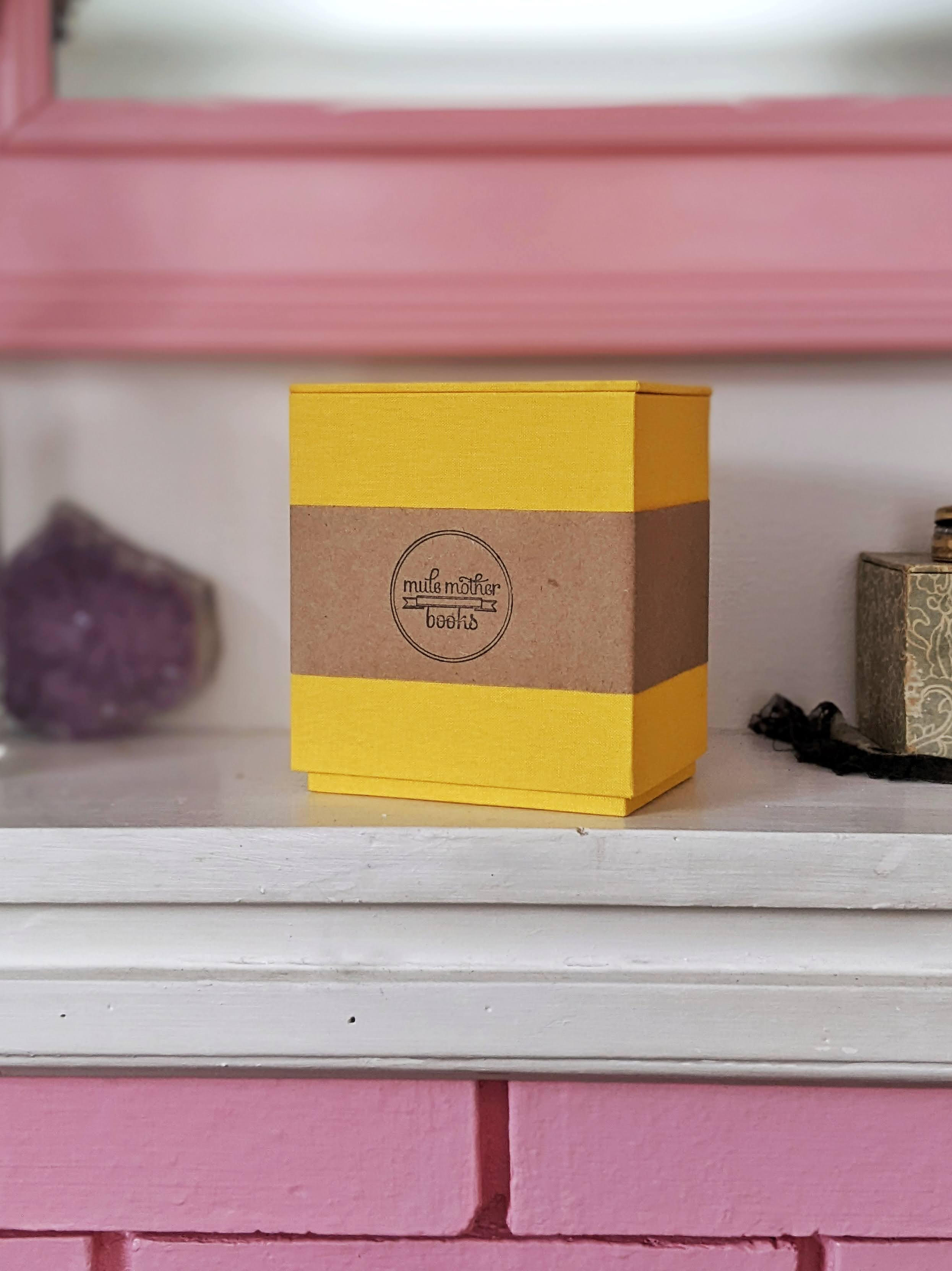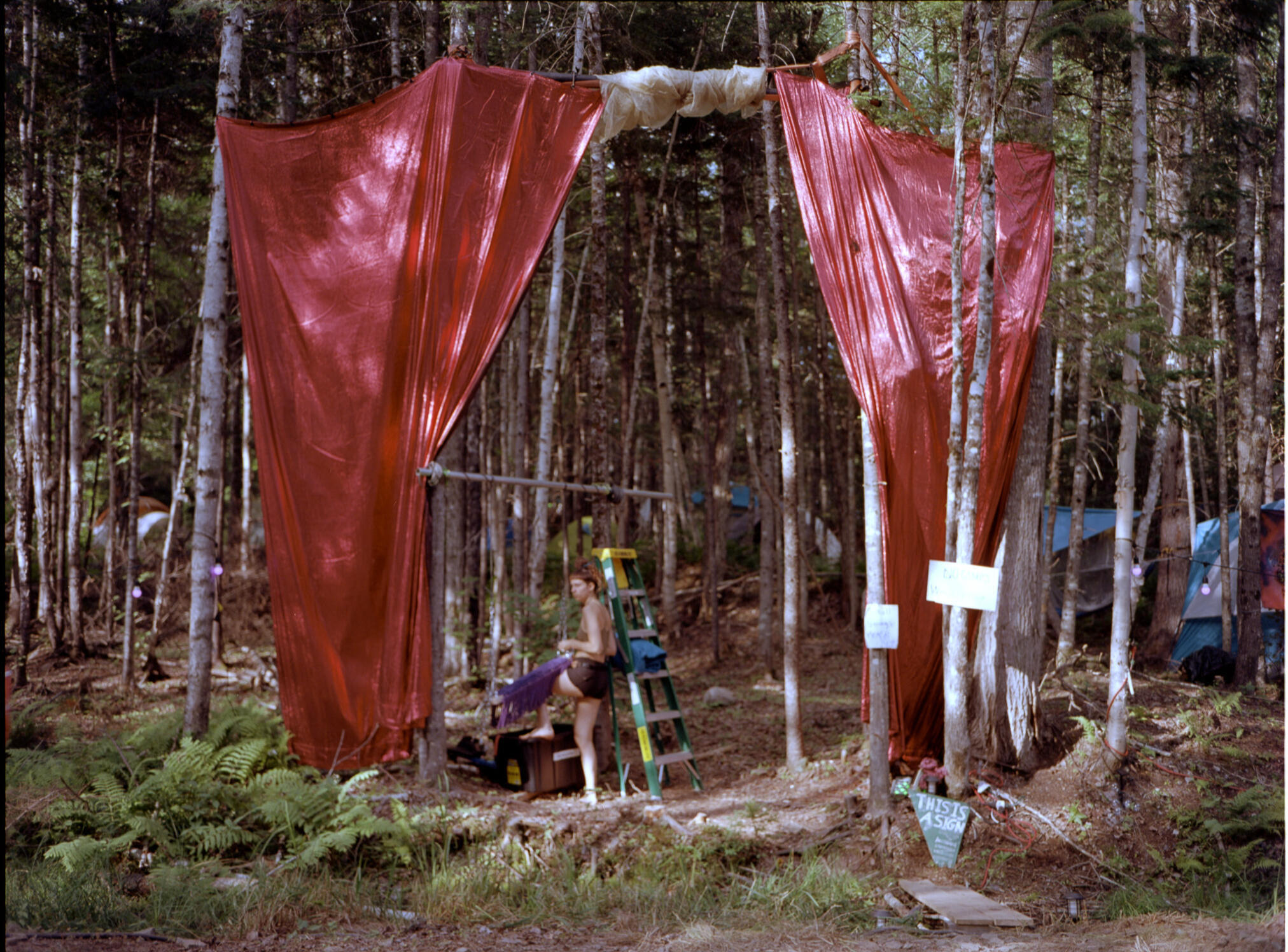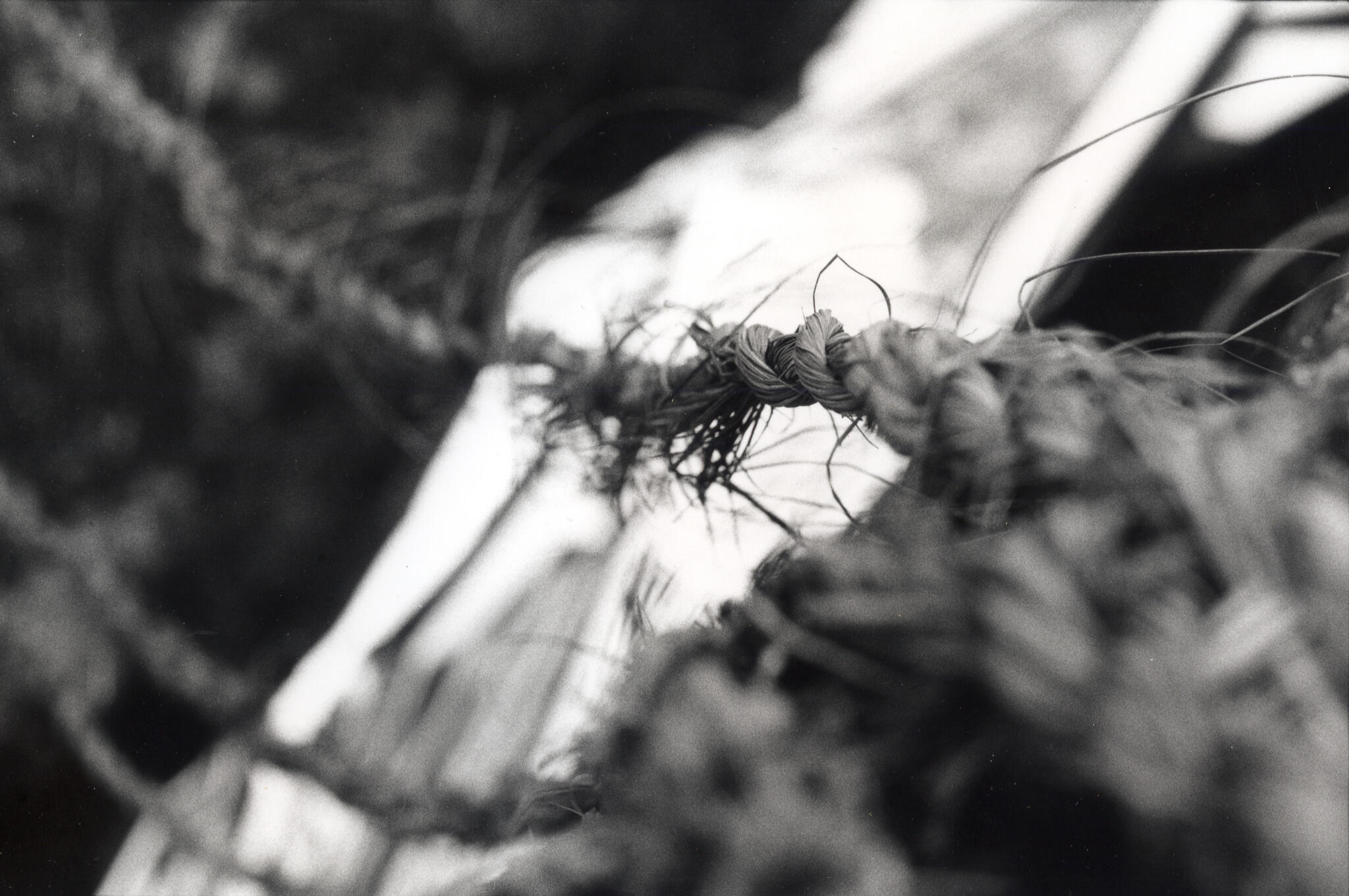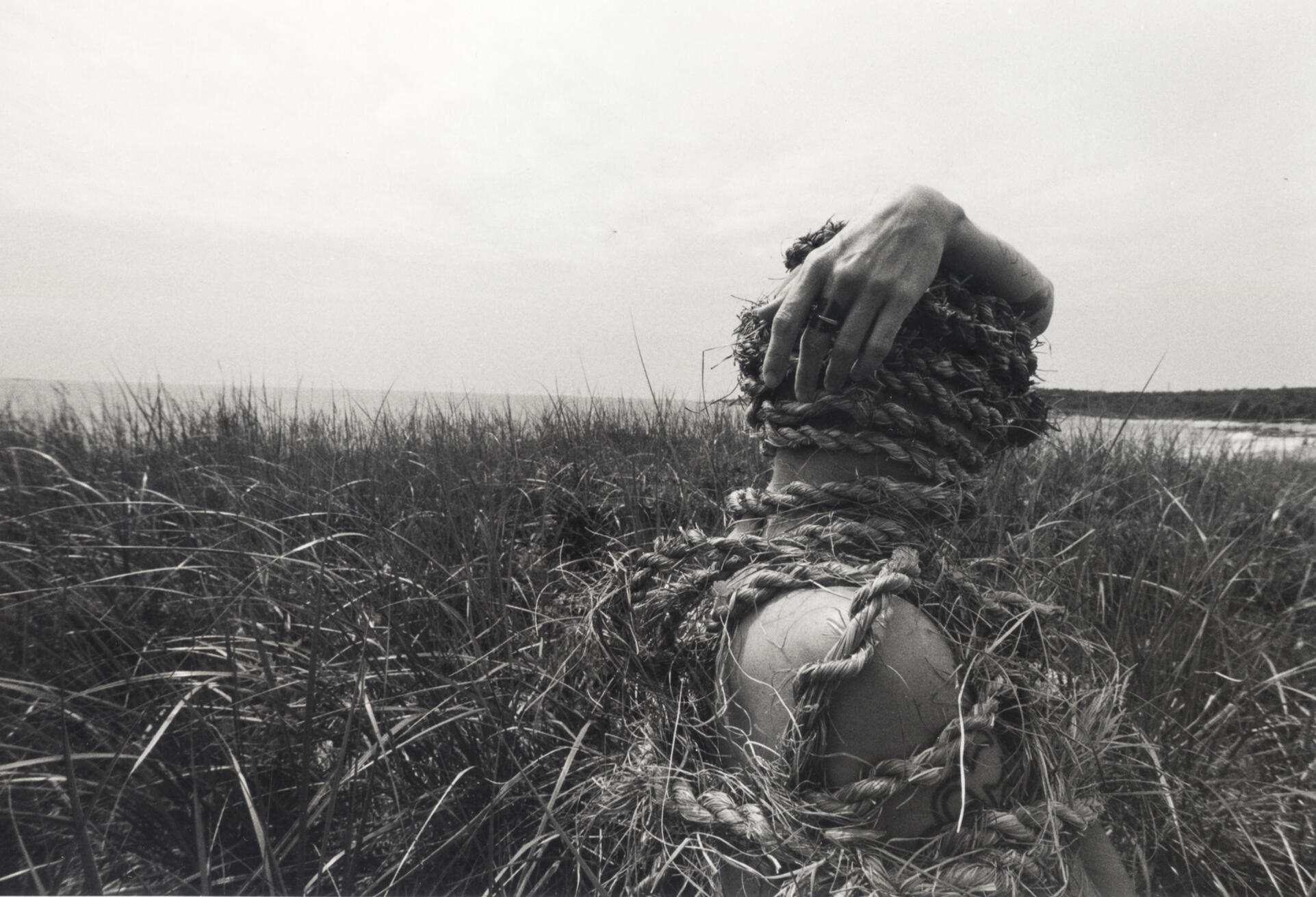 A Gathering of Good Tension is the first collaboration between settler artists Kit Holden-Ada and Ellen Timbre, shaped by a curious and emergent confluence of practice (craft/art), of bodies (human/ land/water/plants) and of time (past/present/future). Combining elements of their jewellery/metalsmithing, installation, film photography, book & box making practices, the piece is comprised of 11 silver gelatin prints shot in various locations in Mi’kma’ki, simmens (traditional Orcadian handmade rope), and a hand constructed box (with lichen dyed linen book-cloth & metallic foil) which serves as a vessel for the rope and the photographs.